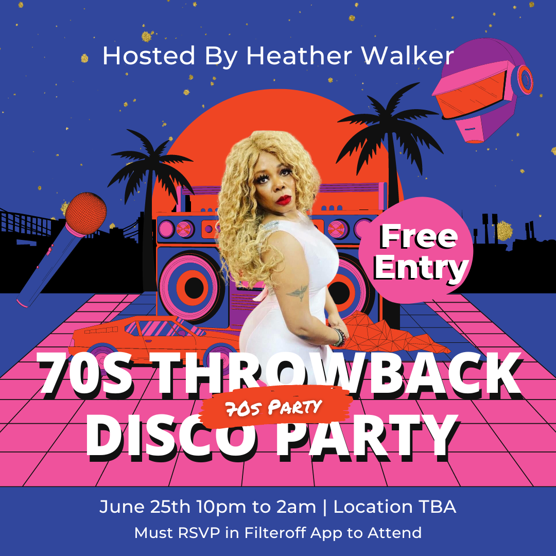 It's time to unleash your inner disco queen or king and get ready for the hottest party of the summer! Join Heather Walker and Filteroff on June 25th from 10pm to 2am for their 70s Throwback Disco Party, where the dance floor will be on fire and the music will be hotter than a jalapeno pepper.